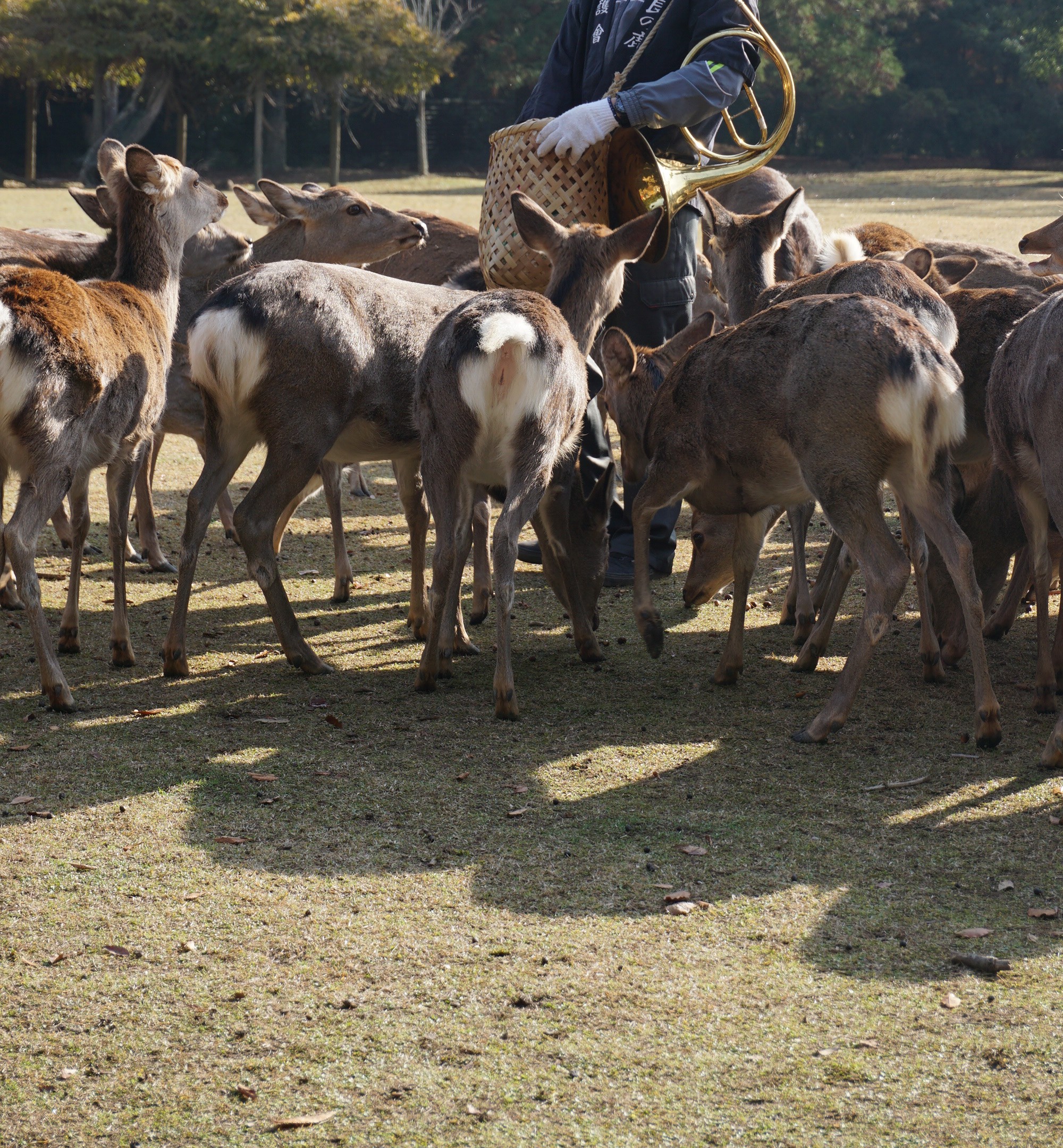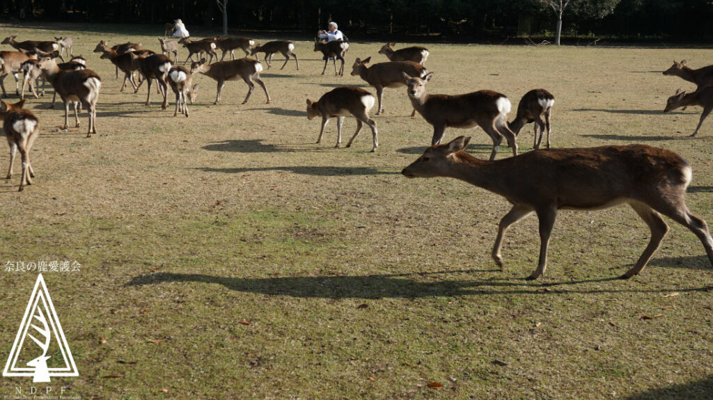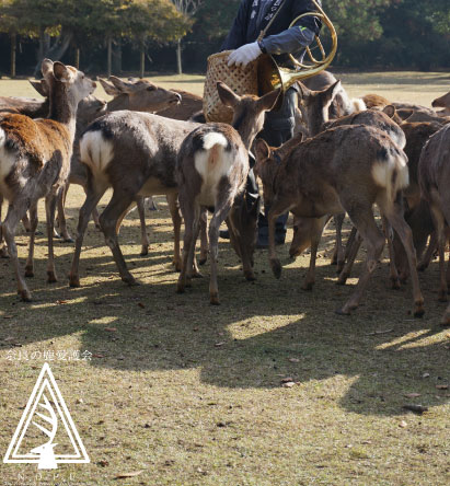 この伝統的な響きを鹿たちは聞きつけて、一斉に駆け寄ってきます。
