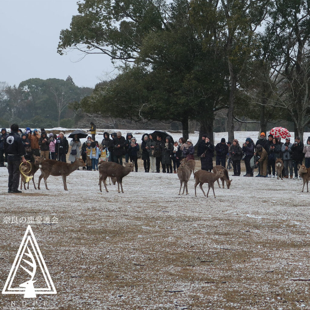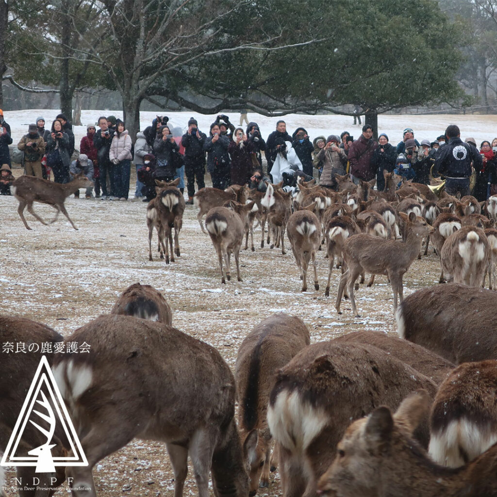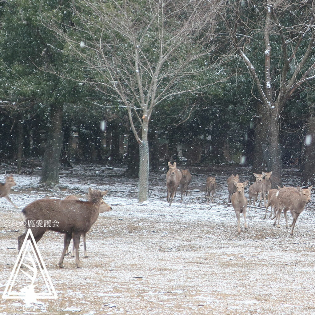 この日は珍しく、奈良公園が一面の雪景色となりました⛄