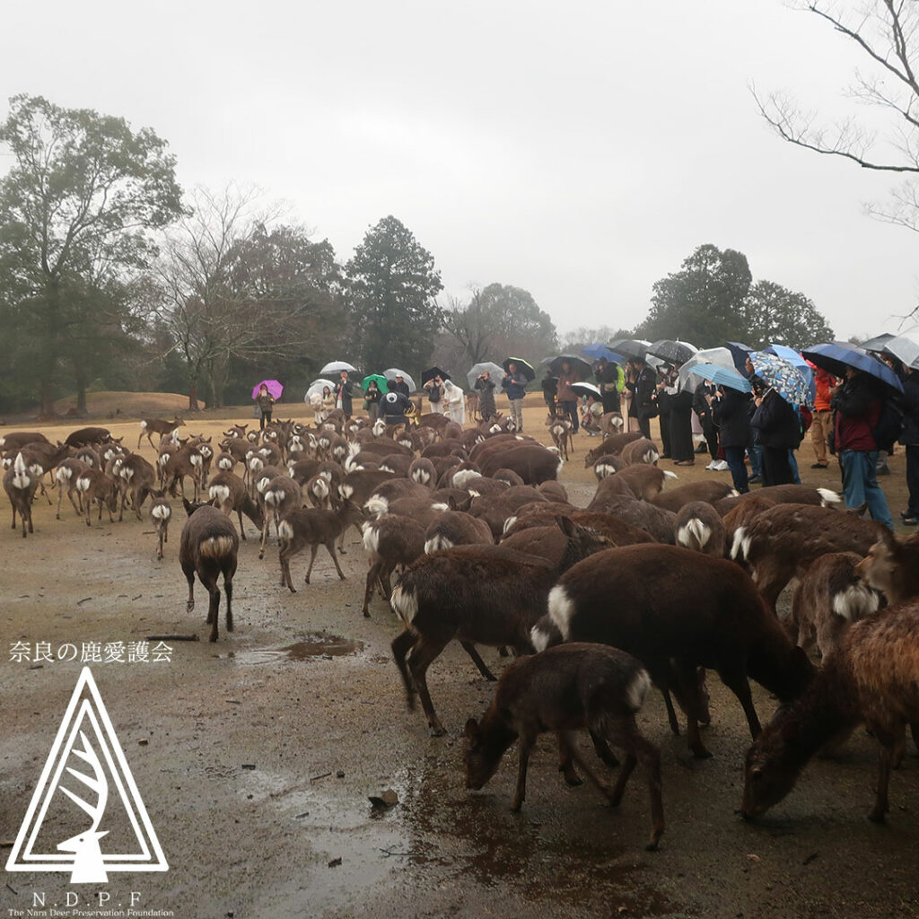 ふゆの鹿寄せ 2月11日 2026年2月15日 に admin が投稿 祝日の水曜日はあいにくの雨でしたが、足元の悪い中お越しいただきありがとうございました!! ふゆの鹿寄せは、今月28日までの土日祝のみ、飛火野にて10時から開催しています。予約不要でどなたでもご覧いただけますので、ぜひお立ち寄りください! 私たちの保護活動は皆さまからのご寄付や募金によって支えられています。どうぞご支援をよろしくお願いいたします。https://naradeer.com/donate/